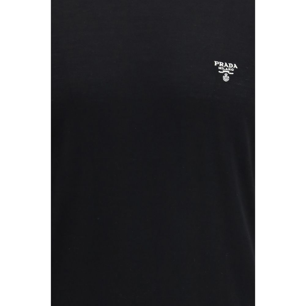 The virgin wool T-shirt by Prada elevates a wardrobe staple through the refined softness of pure wool knitwear. The embroidered logo at the chest enhances its clean silhouette, while the ribbed crewneck, cuffs, and hem reinforce its structured finish. A piece that blends comfort and sophistication, embodying the brand’s understated elegance.