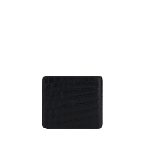Calfskin Embossed Wallet by Saint Laurent, billfold design, made of grained leather, iconic brand print on front, bill compartment, card slots and rectangular pattern.